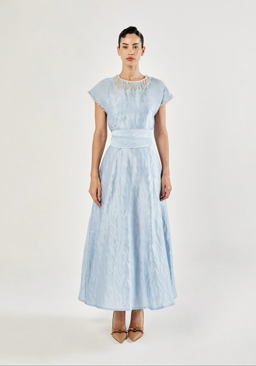 Our online evening elegance collection brings together our stunning collection of styles and fabrics for the evening. Looking for the perfect designer evening dress? You have come to the right place. Using high quality fabrics, often designed exclusively for Baruni, these luxury dresses really make you stand out with their unique style. From bold and striking colours to softer tones, you are sure to find a dress that matches your mood.